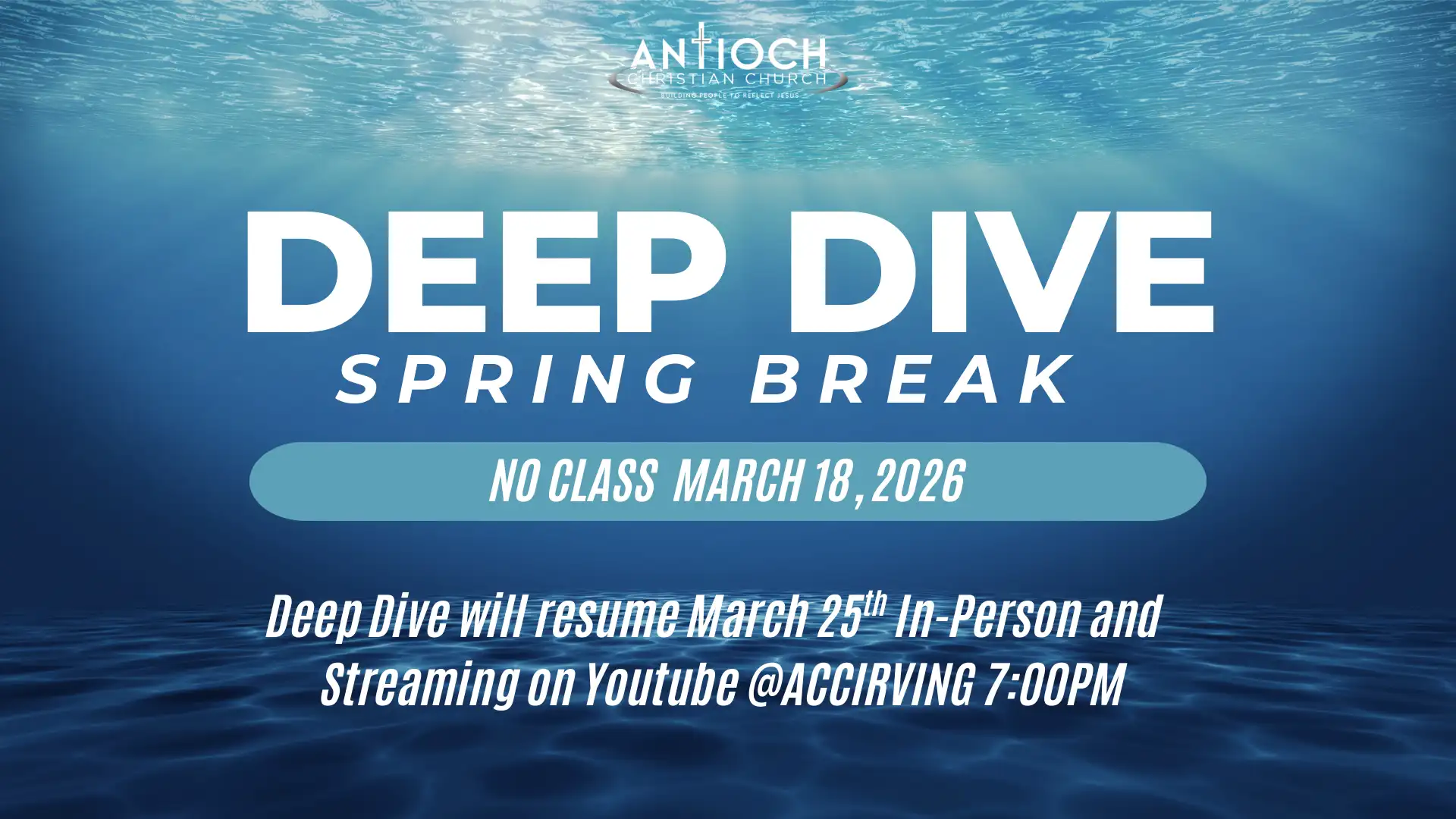Wednesday Midweek Worship Services are live and in person at our Irving campus, and available via our live streaming platforms.
