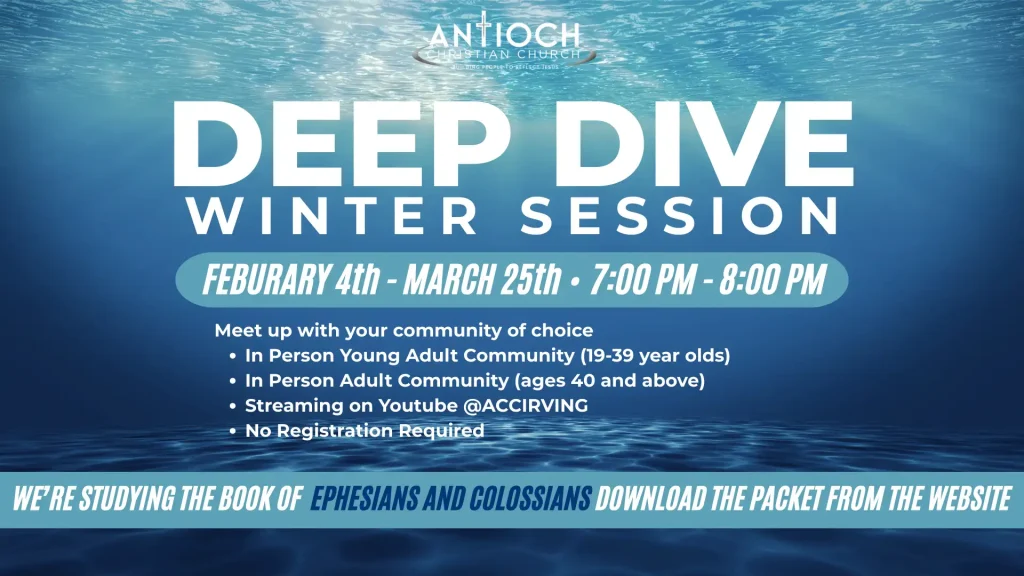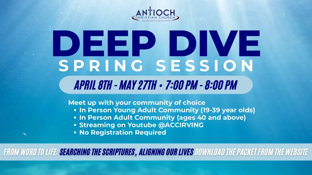Deep Dive Wednesday is a discipleship night where we will have small groups studying the Word together.